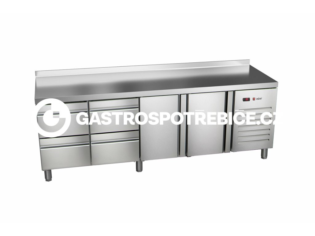 Zesílená konstrukce Konstrukce o šířce 700 mm, speciálně vyrobená pro intenzivní profesionální aplikace, vyznačuje se velmi robustním designem s vysoce kvalitními materiály a perfektní povrchovou úpravou. Pracovní desky Robustní pracovní desky z nerezové oceli o tloušťce 50 mm se 100 mm vysokým zpětným dostřikem jako standardní volitelná výbava, která zabraňuje rozlití za pultem. Přizpůsobení je k dispozici v různých konfiguracích (bez stříkání, bez horní části, s dřezem a materiály (nerezová ocel, žula), aby se přizpůsobily jakýmkoli profesionálním kuchyňským potřebám. Izolace - tloušťka 50 mm Zaručuje výjimečnou, dlouhodobou izolaci a úsporu energie na každém pultu díky polyuretanové izolaci s vysokou hustotou (40 kg/m³) bez freonů, vstřikované pod vysokou tlak. Dveře s integrovaným madlem a odnímatelné těsnění Ergonomická, po celé délce, robustní, dokonale integrovaná rukojeť zajišťuje praktické otevírání dvířek a zabraňuje hromadění prachu a nečistot extrémně snadné čištění. Odnímatelné vytahovací/vtlačovací magnetické těsnění dveří pro zachování maximální hygieny a zachování izolačních vlastností. Výškově nastavitelná nerezová ocel nohy Smontované nohy z nerezové oceli jsou standardně dodávány. Výšku nožiček lze individuálně nastavit (125 mm - 200 mm), aby bylo možné pohodlně čistit pod spotřebičem. Volitelně jsou k dispozici kolečka. Teleskopický posuv z nerezové oceli šuplíky Zásuvky z nerezové oceli s děrovanými spodními deskami a teleskopickými posuvnými vodítky, které lze zcela zasunout pro úsporu pracovní plochy. Odnímatelné vodicí lišty, robustní drátěné mřížky Odnímatelné vodicí lišty umožňují pohodlnější čištění bez použití dalších nástrojů. Umístění a nastavení drátěných mřížek v požadované výšce je možné bez použití přídavných kolejnic. Drátěné mřížky potažené epoxidem pro zlepšení ochrany umožňují skladování různých typů obalů a mají maximální nosnost až 40 kg. Intuitivní digitální ovládání Teplotní parametry se nastavují snadno a rychle, což umožňuje nejvyšší kvalitu a nejlepší uchování potravin. Vysoce účinné komponenty Nízkoenergetické kompresory, velkoplošné výparníky a vysoce výkonné elektronické ventilátory, které minimalizují teplotní zisky a snižují spotřebu energie. Chlazená vestavěná přísada kontejnery Optimální cirkulace vzduchu ve vnitřním těle zajišťuje, že gastronorm pultové nádoby na přísady jsou nepřetržitě chlazeny, takže jsou ideální jako pracovní stanice pro přípravu salátů, sendvičů a pizz. Automatické odpařování odmrazování voda Horký plyn vycházející z kompresoru se používá k automatickému odpařování rozmrazené vody namísto pomocí topných těles, čímž se dosahuje ještě nižší spotřeby energie. Díky tomu potraviny nepodléhají škodlivým teplotním výkyvům. Dálkové čítače Široká škála modelů bez kondenzační jednotky pro minimalizaci emisí tepla a hluku zaručuje bezpečnější pracovní prostředí v profesionálních kuchyních.Doplňkové parametry