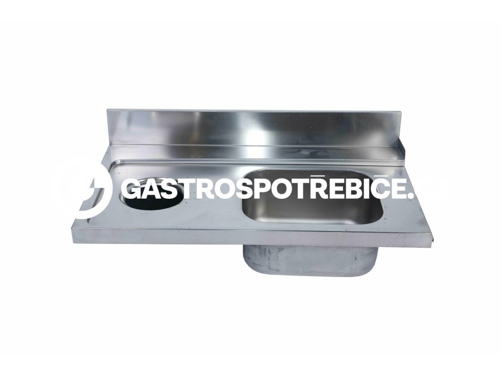 Dřezový výlisek k mycímu stolu s rozměry 1200 × 700 mm v provedení levý dřez + odkládací plocha + odpadový otvor je navržen pro profesionální gastronomické provozy, kde je kladen důraz na hygienu, funkčnost a odolnost. Konstrukce a materiál Stůl je vyroben z potravinářské nerezové oceli (AISI 304), která je odolná vůči korozi a snadno se udržuje v čistotě. Horní pracovní deska je opatřena integrovaným dřezem umístěným na pravé straně a vyvýšeným zády po celé délce, které chrání stěnu před znečištěním. Dřez a odpadový otvor Dřez: hluboký a ergonomicky tvarovaný, umožňuje pohodlné mytí menšího kuchyňského náčiní i větších kusů nádobí. Odpadový otvor: kruhový výřez s prolisem pro snadné odstraňování zbytků přímo do odpadu nebo koše umístěného pod otvorem. * Drobné poškození vzniklé při manipulaciDoplňkové parametry