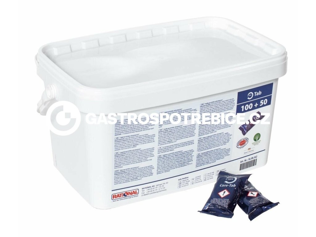 Ošetřovací tablety RATIONAL pro přístroje SelfCookingCenter® s funkcí CareControl Vysoce účinné ošetřující substance aktivně chrání a rozhodujícím způsobem prodlužují životnost vašeho přístroje SelfCookingCenter®. Speciální odvápňovací přísady obsažené v tabletách zabraňují usazování vápna již před jeho vznikem. Trvale zaručují nejvyšší provozní spolehlivost, a to i bez zařízení na změkčování vody a náročného odvápňování. Ošetřovací tablety, 150 kusů, (56.00.562) Balení: 150 ks Pro Rational: od r. 2009Doplňkové parametry