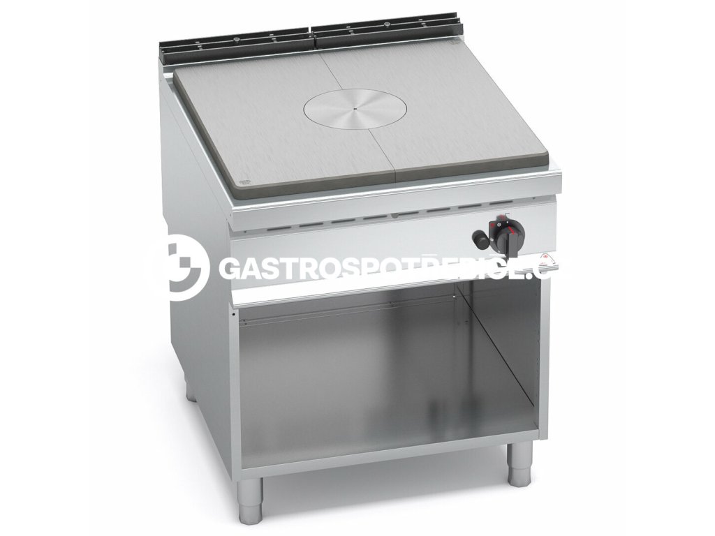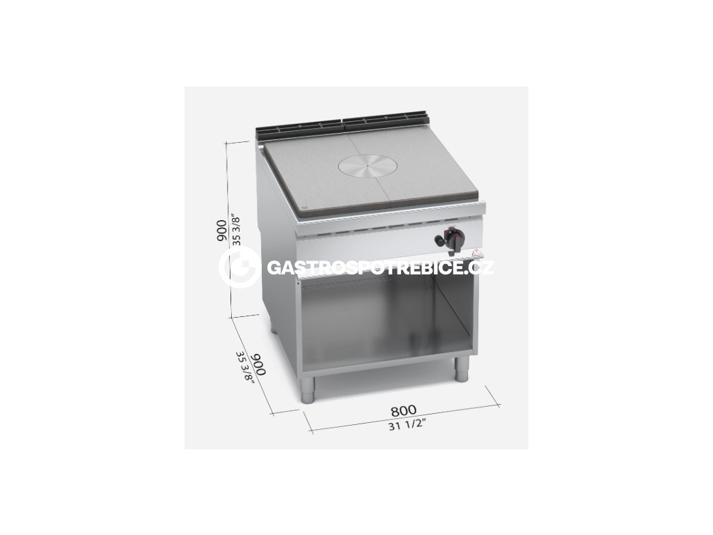 Vařící plotna vhodná vařezení za konstatní teploty Vařící plotna je vhodná pro přípravu velmi chutných pokrmů z tradiční kuchyně. Nepřímé zásobování teplem je vhodné zejména při přípravě omáček a pokrmů, které potřebují pomalé vaření při konstantní teplotě.Je velká ze zcela hladkým povrchem, který tak usnadňuje použití široké škály druhu nádobí a zaručuje snadnou čistitelnost. Konfort a bezpečnost Vnitřní žáruvzdorná izolační vrstva s maximální schopností usměrnění tepla, které je soustřeďováno na střed plotny a nabízí tak vynikající komfort a bezpečnost při vaření. Plynový sporák s ocelovou plotnou velké tloušťky s rozdílnými oblastmi teplot: max. teplota na středu, klesající na okrajích. Ohřev zajišťuje střední litinový hořák s regulací výkonu do 13 kW. Zapalování hořáku věčným plamínkem. Kompaktní provedení s otevřeným podstavcem. Provedení: plyn Počet hořáků: 1 Celkový příkon: 13 kWDoplňkové parametry