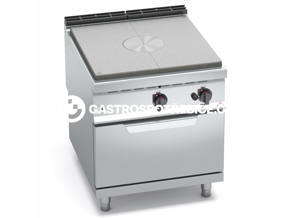 Plynový sporák s ocelovou plotnou velké tloušťky s rozdílnými oblastmi teplot: max. teplota na středu, klesající na okrajích. Ohřev zajišťuje střední litinový hořák s regulací výkonu do 13 kW. Zapalování hořáku a trouby věčným plamínkem. Kompaktní provedení s výkonnou plynovou troubou GN2/1. Vařící plotna je vhodná pro přípravu velmi chutných pokrmů z tradiční kuchyně. Nepřímé zásobování teplem je vhodné zejména při přípravě omáček a pokrmů, které potřebují pomalé vaření při konstantní teplotě. Je velká ze zcela hladkým povrchem, který tak usnadňuje použití široké škály druhu nádobí a zaručuje snadnou čistitelnost. Vnitřní žáru vzdorná izolační vrstva s maximální schopností usměrnění tepla, které je soustřeďováno na střed plotny a nabízí tak vynikající komfort a bezpečnost při vaření. Provedení: plyn Počet hořáků: 1 Trouba pro: 4x GN 2/1 Celkový příkon: 20,8 kWDoplňkové parametry