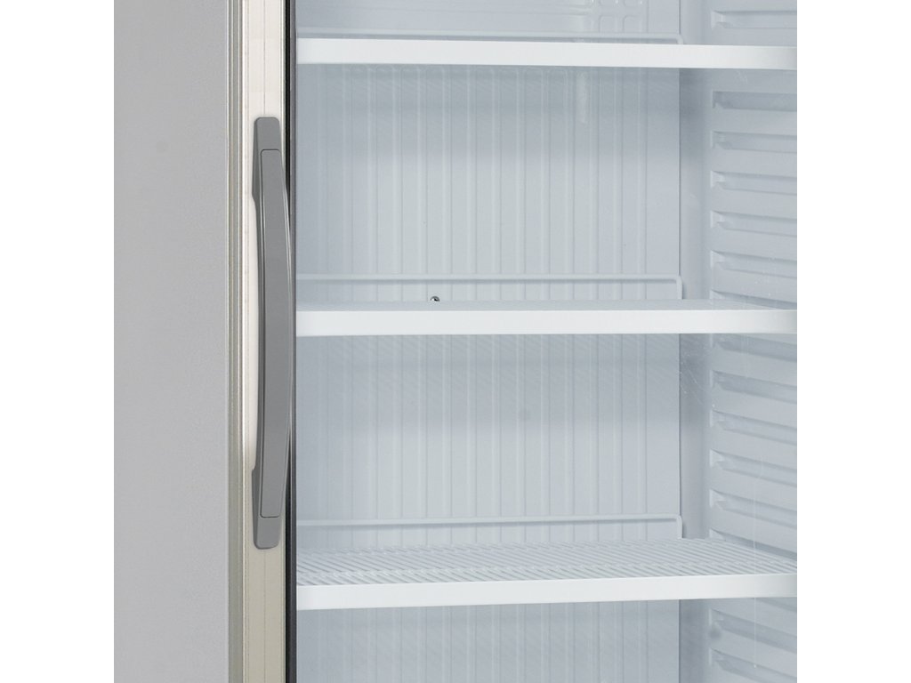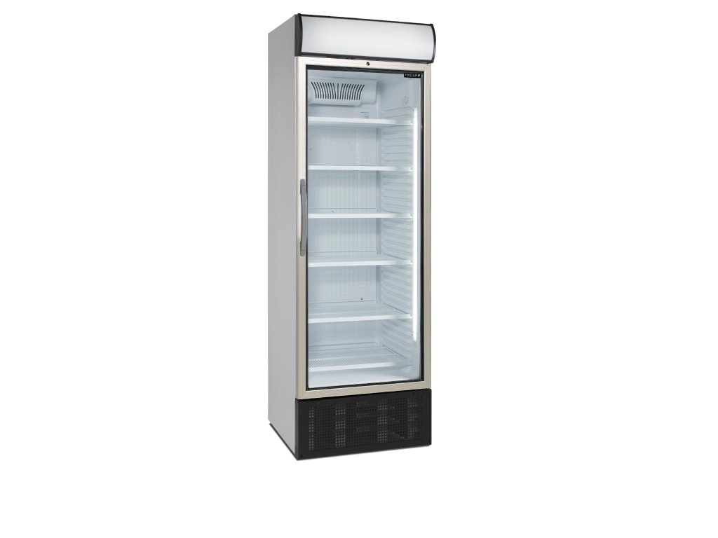 Řada FSC jednodveřových chladicích skříní na láhve nabízí vynikající kvalitu provedení za příznivou cenu. Vitrína je bílá se skleněnými dvířky se šedým hliníkovým rámem. Je ideální pro prezentaci značky a díky osvětlenému reklamnímu panelu v horní části jistě upoutá pozornost zákazníků. Získáte možnost skvělé prezentace produktů v kombinaci s výkonným chladicím systémem s ventilátorem a nastavitelnými policemi umožňujícími flexibilitu. Mnoho modelů je také k dispozici bez reklamního panelu (řada FS). lze měnit otevírání dveří|nastavitelné police|nastavitelné nožky|prosklené křídlové dveře s hliníkovým rámem|reklamní panel s LED osvětlením|chlazení s pomocným ventilátorem|vnitřní LED osvětleníDoplňkové parametry