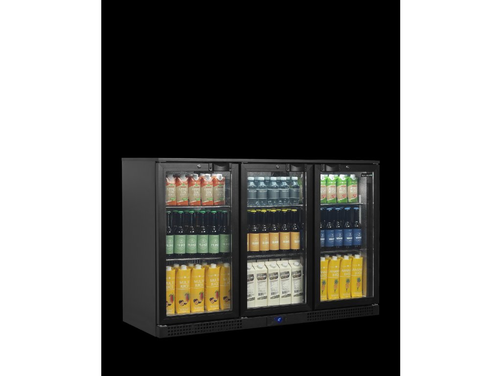 BA je řada vysoce kvalitních minibarů. Má hliníkové dveře a chromované stabilní roštové police. Dveře s dvojitým sklem nabízejí skvělou viditelnost výrobků a nižší spotřebu energie. Minibary jsou k dispozici s 1, 2 a 3 dveřmi – můžete si vybrat mezi křídlovými (H) a posuvnými dveřmi (S). Aby se minibar vešel do jakéhokoliv baru, dodává se ve dvou výškách: 870 mm a 900 mm. Nová řada minibarů je vysoce energeticky účinná a v porovnání s předchozími modely stejné řady spotřebuje v průměru o 59 % méně energie. energetická třída EU B|cca o 59 % energeticky účinnější než předchozí řada BA|ventilované chlazení pro rychlé snížení teploty a zajištění rovnoměrné teploty|energeticky úsporný invertorový kompresor|dvojité tvrzené sklo|prosklené křídlové dveře s hliníkovým rámem|snadno přístupný elektronický termostat|nastavitelné police za každými dveřmi|vnitřní LED osvětlení|zámekDoplňkové parametry