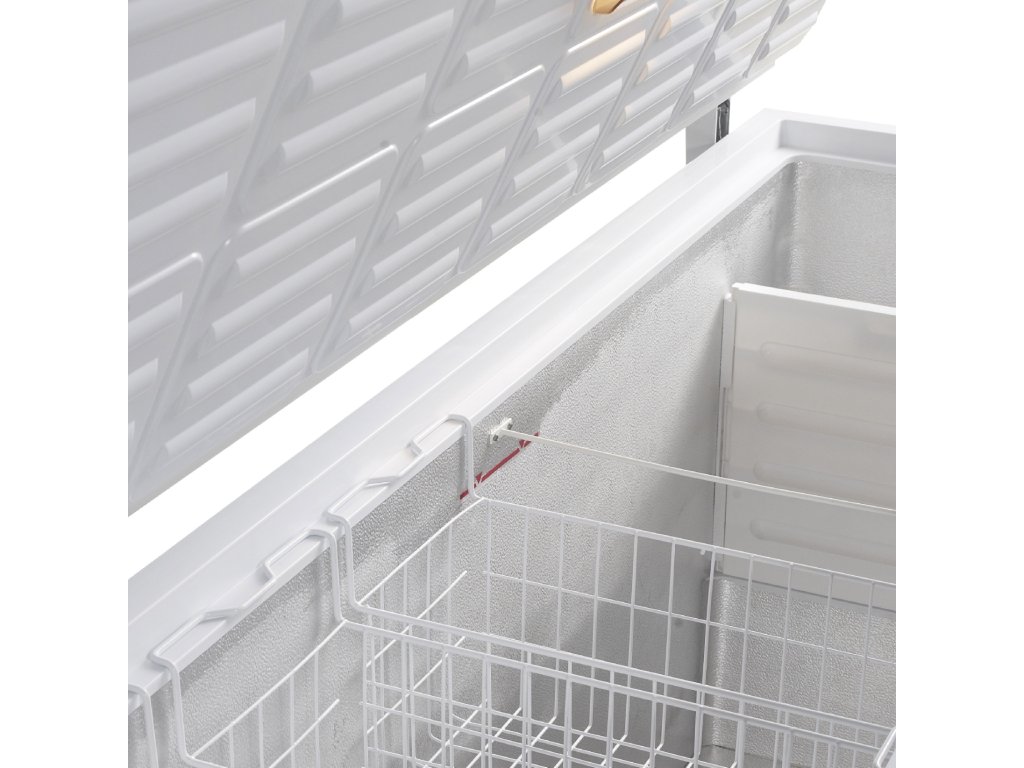 Řada mrazniček FR-SL nabízí spolehlivý výrobek za příznivou cenu. Dodává se v různých velikostech v bílé barvě a s pevným víkem v bílé lakované barvě. Má interiér z oceli s bílým nátěrem a odtok pro odvádění vody při rozmrazování pro snadnou údržbu. Součástí jsou i silná kolečka pro lepší mobilitu. rukojeť se zámkem|teploměr|vnitřní opláštění bílá lakovaná ocel|odtok vody při odmrazování|koše|pevná kolečkaDoplňkové parametry
