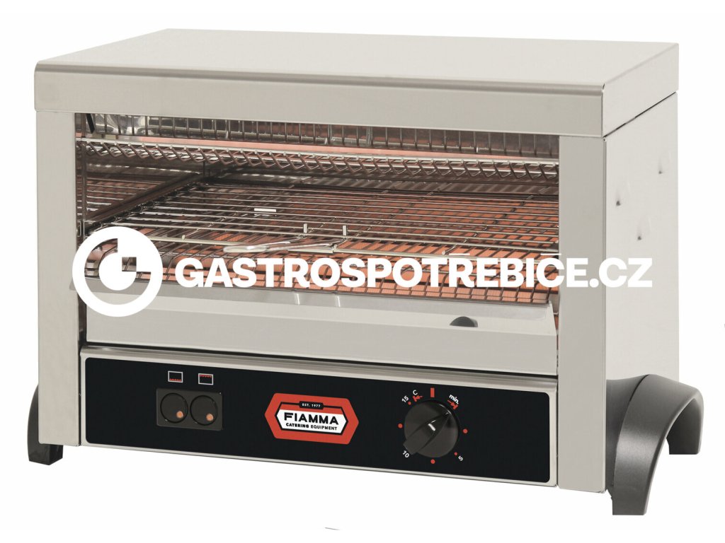 Zařízení toaster gril Fiamma slouží k přípravě křupavých toustů. model TRS 20.3 je v celonerezovém provedení ovládání samostaně pro každé topení (spodní/horní) jedna pečící komora s kapacitou : až 6 toastů časovač 1-15 min. kontrolka chodu odpadní miskaDoplňkové parametry