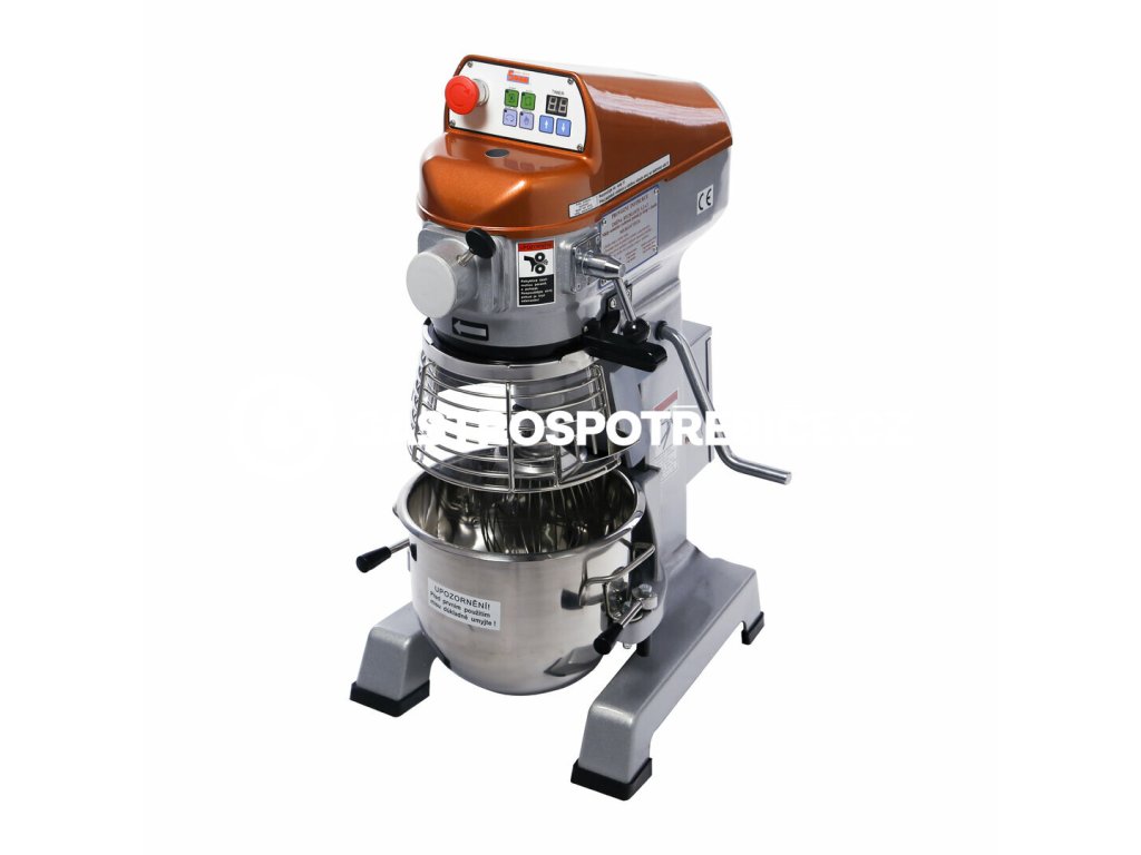 Univerzální roboty Spar SP 100 se vyznačují robustním provedením a minimálními požadavky na prostor při maximálním zachování stability při plném zatížení stroje. Jsou vhodné pro přípravu široké škály pokrmů (hnětení, šlehání, míchání). Univerzální roboty Spar si oblíbíte díky intuitivnímu ovládání, snadné obsluze, čištění a údržbě. Možnost přídavných zařízení (mlýnek na maso, kouhač zeleniny). Konstrukční vlastnosti robotu SPAR SP 100: Pohon šnekový do lehkého provozu Digitální ovládání s časovačem a signalizací / pulsní volbou Jednoduché ovládání, snadné čištění Mechanické zvedání kotlíku a odnímatelný bezpečnostní kryt kotlíku Bezpečnostní tlačítko STOP Základní výbava příslušenství: nerezový kotlík s odnímatelným krytem hnětací hák, šlehací metla a míchač gumové návleky na nožičkyDoplňkové parametry