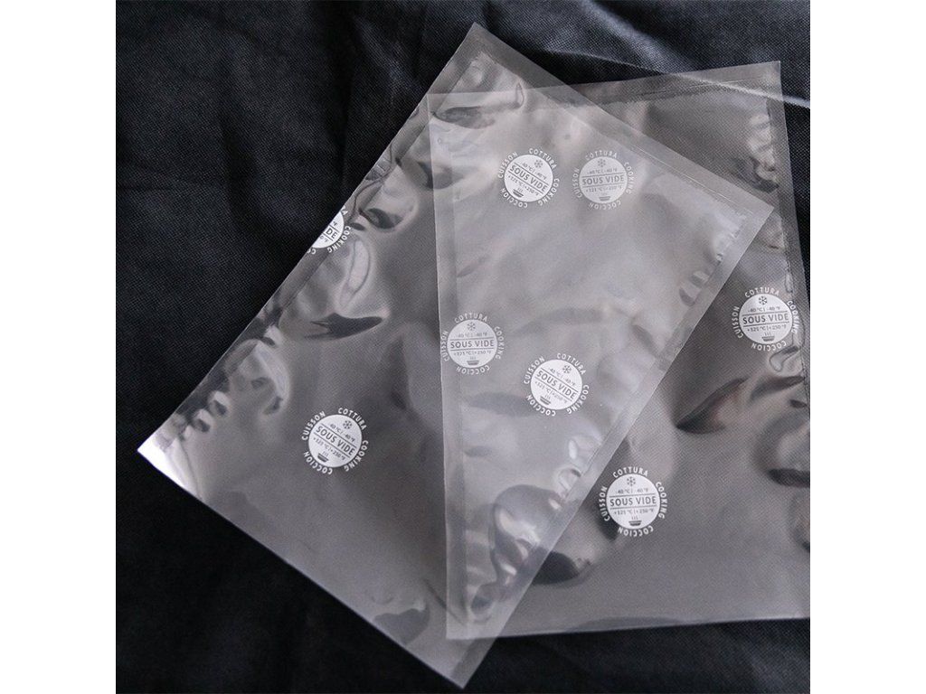 Naše průhledné hladké sáčky na vaření mají speciální logo, které naznačuje jeho použití, díky kterému je dokážete okamžitě odlišit od jiných druhů sáčků a rolí. Jsou vhodné pro sous vide vaření pevné, jemné a tekuté potraviny. Zaručují vynikající výsledky díky minimu tloušťky a vysokou odolností proti teplu a perforace. Jsou vhodné pro komorové vakuum balicí stroje. Teplota použití: -40 °C/+121 °C 100% BPA FREE: hladké sáčky pro vakuové vaření jsou složeny z prvotřídních polymerů s certifikátem CE a jsou 100% bez BPA v souladu s příslušnou legislativou EU. Byly speciálně studovány, navrženy a vyrobeny pro vaření jídla pomocí inovativní techniky vaření při nízké teplotě. NULOVÉ ZTRÁTY HMOTNOSTI BĚHEM VAŘENÍ = ÚSPORA NÁKLADŮ: při tradičním vaření ztratí potraviny až 30 % své hmotnosti, což se často promítá do značného plýtvání potravinami a penězi; díky technice sous vide nedochází při vaření ke ztrátám tekutin, rozměry výrobků zůstávají nezměněny, což umožňuje získat větší počet využitelných porcí.Doplňkové parametry