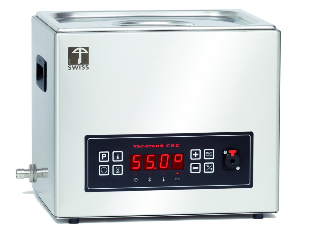 Technické parametry Vakuovací stroje Rozměry zařízení (š x h x v) 339 x 275 x 291 mm Rozměr komory (š x h x v) 297 x 237 x 150 mm Napětí 230 V Příkon 500 W Počet komor 1 Záruka 2 roky Varné lázně Obsah varné lázně 9 l Odtok (Výpustní kohout) ano SVC Sonda pro vnitřní teplotu anoDoplňkové parametry