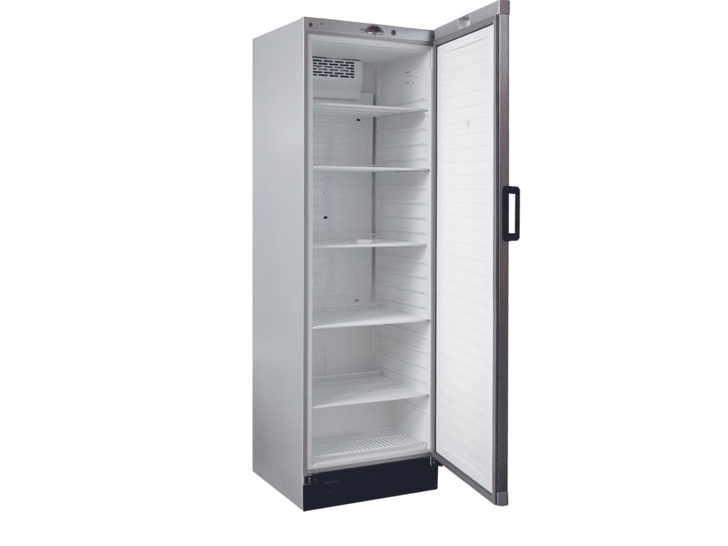 Vestfrost CFKS je jednodveřová chladicí skříň s plnými dveřmi. Má 5 nastavitelných polic, pevné madlo, zámek a je k dostání ve dvou barevných variantách - bílé a šedé s nerezovými dveřmi. Otevírání dveří je možné změnit a pro lepší manipulaci se skříní jsou v zadní části lednice pojezdová kolečka. jednodveřová chladící skříň|ukazatel teploty na horní liště dveří|zámek|termostat|automatické odtávání|5 roštů|osvětlení chladicího prostoru|zadní kolečka|ventilované chlazeníDoplňkové parametry