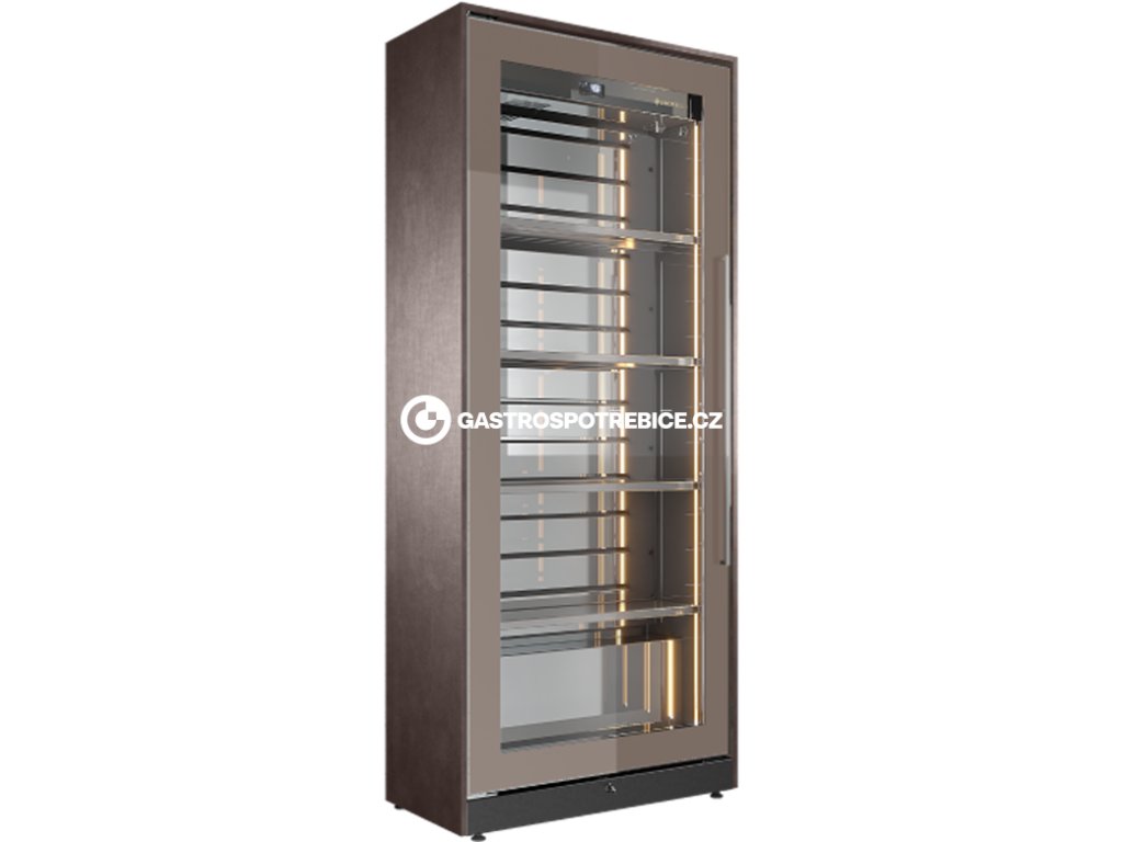 Model WYN4L je součástí kolekce vinoték WINE, která spojuje elegantní vzhled, úsporné rozměry a profesionální výkon. Díky své hloubce pouze 460 mm je ideální do prostor s omezeným místem, aniž by utrpěla estetika nebo kapacita. Perfektní řešení pro restaurace, vinárny, hotely či moderní interiéry. Řada Infinity vyniká svou elegancí s přesnými, dobře definovanými liniemi, dokonalou geometrií a špičkovou technologií. Vnitřní LED osvětlení podél bočních panelů a nerezového vnitřku vytváří působivý efekt hloubky a hry světla, čímž umocňuje vizuální dojem lahví a vytváří světlý a příjemný prostor. Police dodává vitríně hřejivost, eleganci a podtrhuje její sofistikovaný vzhled. V ceně jsou 4 police na stojící láhve (každá po 26 ks). V případě zájmu je možnost zakoupení i jiných polic. Technické vlastnosti: Tělo z integralní pěny s izolační tloušťkou 65 mm pro vysokou energetickou účinnost Vnitřní plášť z leštěné nerezové oceli – elegantní, hygienický a odolný Vnější opláštění z laminovaného panelu – moderní a snadno udržovatelné Dveře s potiskem (silk-screen) a dvouvrstvým nízkoemisním sklem Zámek pro bezpečné uchování obsahu Ventilovaný chladicí systém s přesnou termostatickou regulací teploty Statická kondenzace pro mimořádně tichý provoz, vhodný i do klidného prostředí Vnitřní LED osvětlení integrované po stranách pro rovnoměrné nasvícení lahví Zásobník na kondenzát, bez nutnosti napojení na odpadní systém Model je vybaven 4 základními policemi Vnitřní vybavení (jiné typy polic a zásvek) se objednávají samostatně (zásuvka na položené lahve, trubková police pro nakloněné ukládání a prezentaci lahví, případně další příplatkové úpravy a výbava viz.katalog) Kompaktní rozměry, vysoká hodnota Rozměry: 864 × 450 × 2040 mm Elegantní design s nerezovým rámem dveří, ladícím s barevným provedením vitríny Vhodné pro prezentaci a uchování vín v profesionálním prostředí – restaurace, vinotéky, degustační prostory Vysoce přizpůsobitelný interiér Možnost osazení výsuvnými zásuvkami nebo policemi pro lahve ve svislé i šikmé poloze Vnitřní uspořádání v souladu s požadavky zákazníka – pozice lahví nastavitelná horizontálně, vertikálně i diagonálně Vizuální přehlednost a snadný přístup díky výsuvnému mechanismu a kvalitnímu LED osvětlení Možnoti vnitřního uspořádání: 4 police pro stojící láhve (každá na 26 lahví typu bordó) - základní provedení - v ceně Dostupné provedení vinoték (do poptávky prosím uveďte, o jakou barvu máte zájem) Toffee + Toffe Opláštění DveřeDoplňkové parametry