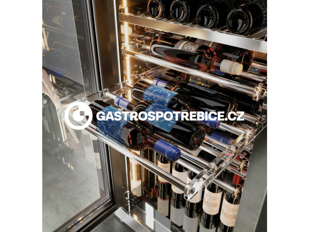 Model WYN4S je součástí kolekce vinoték WINE, která spojuje elegantní vzhled, úsporné rozměry a profesionální výkon. Díky své hloubce pouze 460 mm je ideální do prostor s omezeným místem, aniž by utrpěla estetika nebo kapacita. Perfektní řešení pro restaurace, vinárny, hotely či moderní interiéry. Řada Infinity vyniká svou elegancí s přesnými, dobře definovanými liniemi, dokonalou geometrií a špičkovou technologií. Vnitřní LED osvětlení podél bočních panelů a nerezového vnitřku vytváří působivý efekt hloubky a hry světla, čímž umocňuje vizuální dojem lahví a vytváří světlý a příjemný prostor. Police dodává vitríně hřejivost, eleganci a podtrhuje její sofistikovaný vzhled. V ceně jsou 4 police na stojící láhve (každá po 17 ks). V případě zájmu je možnost zakoupení i jiných polic. Technické vlastnosti: Tělo z integralní pěny s izolační tloušťkou 65 mm pro vysokou energetickou účinnost Vnitřní plášť z leštěné nerezové oceli – elegantní, hygienický a odolný Vnější opláštění z laminovaného panelu – moderní a snadno udržovatelné Dveře s potiskem (silk-screen) a dvouvrstvým nízkoemisním sklem Zámek pro bezpečné uchování obsahu Ventilovaný chladicí systém s přesnou termostatickou regulací teploty Statická kondenzace pro mimořádně tichý provoz, vhodný i do klidného prostředí Vnitřní LED osvětlení integrované po stranách pro rovnoměrné nasvícení lahví Zásobník na kondenzát, bez nutnosti napojení na odpadní systém Model je vybaven 4 základními policemi Vnitřní vybavení (jiné typy polic a zásvek) se objednávají samostatně (zásuvka na položené lahve, trubková police pro nakloněné ukládání a prezentaci lahví, případně další příplatkové úpravy a výbava viz.katalog) Kompaktní rozměry, vysoká hodnota Rozměry: 654 × 450 × 2040 mm Elegantní design s nerezovým rámem dveří, ladícím s barevným provedením vitríny Vhodné pro prezentaci a uchování vín v profesionálním prostředí – restaurace, vinotéky, degustační prostory Vysoce přizpůsobitelný interiér Možnost osazení výsuvnými zásuvkami nebo policemi pro lahve ve svislé i šikmé poloze Vnitřní uspořádání v souladu s požadavky zákazníka – pozice lahví nastavitelná horizontálně, vertikálně i diagonálně Vizuální přehlednost a snadný přístup díky výsuvnému mechanismu a kvalitnímu LED osvětlení Možnoti vnitřního uspořádání: 4 police pro stojící láhve (každá na 17 lahví typu bordó) - základní provedení - v ceně Dostupné provedení vinoték (do poptávky prosím uveďte, o jakou barvu máte zájem) Toffee + Toffe Opláštění DveřeDoplňkové parametry