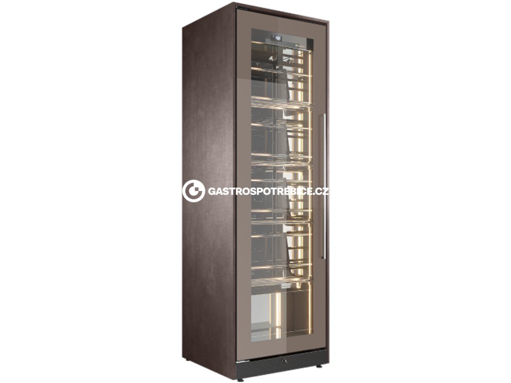 Model WYN6S je větší variantou kompaktní řady vinoték, která spojuje vysokou kapacitu, prémiové materiály a elegantní vzhled. Je ideální pro prostředí, kde je kladen důraz na tichý provoz, stylovou prezentaci vín a spolehlivou regulaci teploty – jako jsou restaurace, vinotéky, hotely nebo degustační zóny. Řada Infinity vyniká svou elegancí s přesnými, dobře definovanými liniemi, dokonalou geometrií a špičkovou technologií. Vnitřní LED osvětlení podél bočních panelů a nerezového vnitřku vytváří působivý efekt hloubky a hry světla, čímž umocňuje vizuální dojem lahví a vytváří světlý a příjemný prostor. Police dodává vitríně hřejivost, eleganci a podtrhuje její sofistikovaný vzhled. V ceně jsou 4 police na stojící láhve (každá po 30 ks). V případě zájmu je možnost zakoupení i jiných polic. Technické vlastnosti: Tělo z integralní pěny s izolační tloušťkou 65 mm pro vynikající tepelnou a energetickou účinnost Vnitřní plášť z leštěné nerezové oceli – elegantní, hygienický a snadno udržovatelný Vnější opláštění z laminovaného panelu – odolné a vizuálně přizpůsobitelné Dveře s potiskem (silk-screen) a dvouvrstvým nízkoemisním sklem Zámek pro bezpečné uchování obsahu Ventilovaný chladicí systém s termostatickou regulací teploty Statická kondenzace pro maximálně tichý provoz LED osvětlení integrované po bočních stranách pro rovnoměrné nasvícení vystavených lahví Zásobník na kondenzát, bez nutnosti připojení na odpadní systém Model je vybaven 4 základními policemi Vnitřní vybavení (jiné typy polic a zásvek) se objednávají samostatně (zásuvka na položené lahve, trubková police pro nakloněné ukládání a prezentaci lahví, případně další příplatkové úpravy a výbava viz.katalog) Kompaktní rozměry, vysoká hodnota Rozměry: 654 × 650 × 2040 mm Elegantní design nerezovým rámem dveří, ladícím s barevným provedením vitríny Vhodné pro prezentaci a uchování vín v profesionálním prostředí – restaurace, vinotéky, degustační prostory Vysoce přizpůsobitelný interiér Přizpůsobitelné uspořádání lahví: vertikální, horizontální, diagonální nebo kombinované Kompatibilita s policemi i výsuvnými zásuvkami Ideální pro profesionální prezentaci různých typů vín Stylový interiér v lesklé oceli zajišťuje moderní kontrast a snadnou údržbu Možnoti vnitřního uspořádání: 4 police pro stojící láhve (každá na 30 lahví typu bordó) - základní provedení - v ceně 12 výsuvných zásuvek pro horizontální uložení lahví (každá na 4 lahví) - možnost přikoupit 12 výsuvných zásuvek pro vertikální uložení lahví (každá na 4 lahví) - možnost přikoupit 4 šikmé tubusové police (každá po 18 lahví) - možnost přikoupit Dostupné provedení vinoték (do poptávky prosím uveďte, o jakou barvu máte zájem) Toffee + Toffe Opláštění DveřeDoplňkové parametry