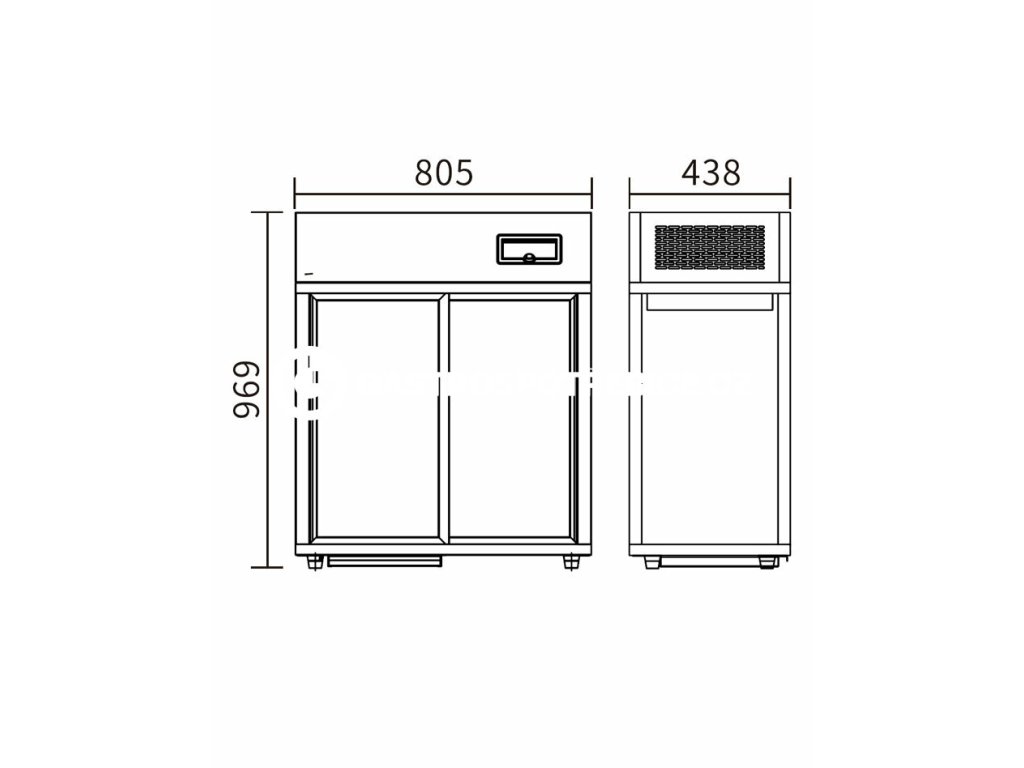 Chladicí pultová panoramatická vitrína RT-177L s ventilovaným chlazením (obslužná/samoobslužná), určena k prezentaci a prodeji potravin a nápojů. Vitrína je v elegantním nerezovém provedení, prosklená ze třech stran (izolovaná skla), agregát umístěn napravo (ze strany obsluhy), kde jsou umístěna posuvná dvířka (s trojitým sklem). Intenzivní rohové LED osvětlení (4x) neohřívá vnitřní prostor a výrazně napomáhá prezentaci a prodeji ve všech patrech. Vitrína je ovládána digitálním regulátorem se zobrazením teploty. Ventilovaný chladící systém s automatickým odtáváním a uložný prostor vybaven 2 chromovými a výškově polohovatelnými policemi. Nastavitelné nožičky.Doplňkové parametry