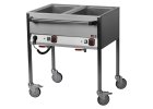 Vodní lázně slouží k přepravě, uchování a výdeji teplých pokrmů v jídelnách, restauracích nebo při cateringu. Nabízíme stacionární i pojízdné varianty s kapacitou až čtyř van pro gastronádoby GN 1/1. Konstrukce z nerezové oceli AISI 304 zajišťuje odolnost i snadné čištění. Každá vana je vybavena termostatem, vypínačem a výpustí s pojistkou, s možností doplnění o vyhřívanou podestavbu.