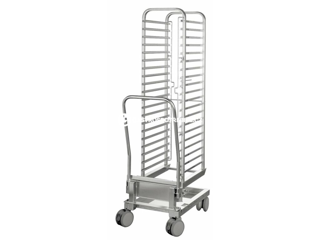 Stojanové vozíky z kvalitní ušlechtilé oceli odpovídají nejpřísnějším nárokům na jakost a jsou optimálně přizpůsobeny přístrojům RATIONAL. Malá zásuvná výška max. 1,60 metru umožňuje rychlé a ergonomické plněni a vyprazdňováni. Nejjednodušší přepravy jídel se dosahuje díky obzvláště velkým a hygienickým tandemovým kolečkům (CNS) s klidným chodem. Pro rychlé plnění a vyprazdňování i mimo přistroj RATIONAL. Rozměr polic: GN 1/1 Počet zásuvů: 20Doplňkové parametry