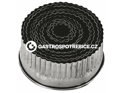 Nerezová vlnková vykrajovátka na těsto v setu 12-ti různě velkých průměrů od 35 do 90 mm.