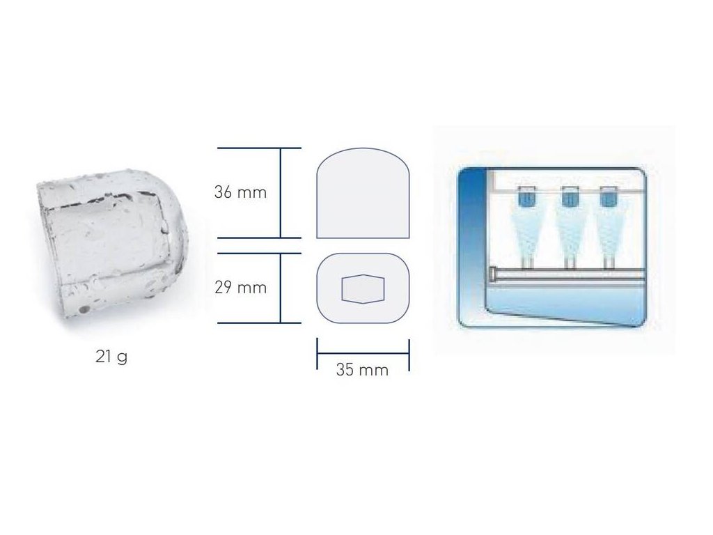 Výrobník kloboučkového ledu SDH 18 A od italského výrobce SIMAG. výrobník ledu značky SIMAG, jejichž výrobce je součástí skupiny vyrábějící rovněž známé značky Scotsman a Icematic, jsou konstrukčně a designově řešeny tak, aby splňovaly požadavky na jednoduchou obsluhu, snadné čištění a dodržování hygieny profesionální výrobník kloboučkového ledu s nástřikem vody, který je vhodný do barů, restaurací a kaváren pro různé druhy nápojů chlazení vzduchem kloboučky s dutinou o rozměru 35×29×36 mm, 21 g možnost regulovat velikost kloboučků je na ovládacím panelu pod předním krytem výrobníku produkce ledu 19 kg/24 hodin (denní produkce při teplotě okolí 10° C a teplotě přívodní vody 10° C) výroba ledu řízena elektronickým časovačem spolehlivost provozu, nízká spotřeba vody a elektrické energie, snadno přístupné komponenty zaoblené hrany, zaoblené plastové krytky předních rohů usnadňující čištění a zvyšují hygienický standard omyvatelný vzuchový filtr kondenzátoru, zamezuje usazování nečistot a snížení produkce ledu patentované antibakteriální ošetření AIGON hlavní přepínač ON/OFF zapuštěný v hraně výrobníku, tak aby se zabránilo samovolnému zapnutí/vypnutí nástřiková lišta s fixními tryskami vertikální čerpadlo nastavitelné nožičky 1,5 mm celonerezové provedení ekologické chladivo R290 Standardní vybavení: lopatka přívodní hadice odpadní hadice Lze dovybavit externím čerpadlem, pokud je odtok vody umístěn výše jak 3 cm od podlahy.