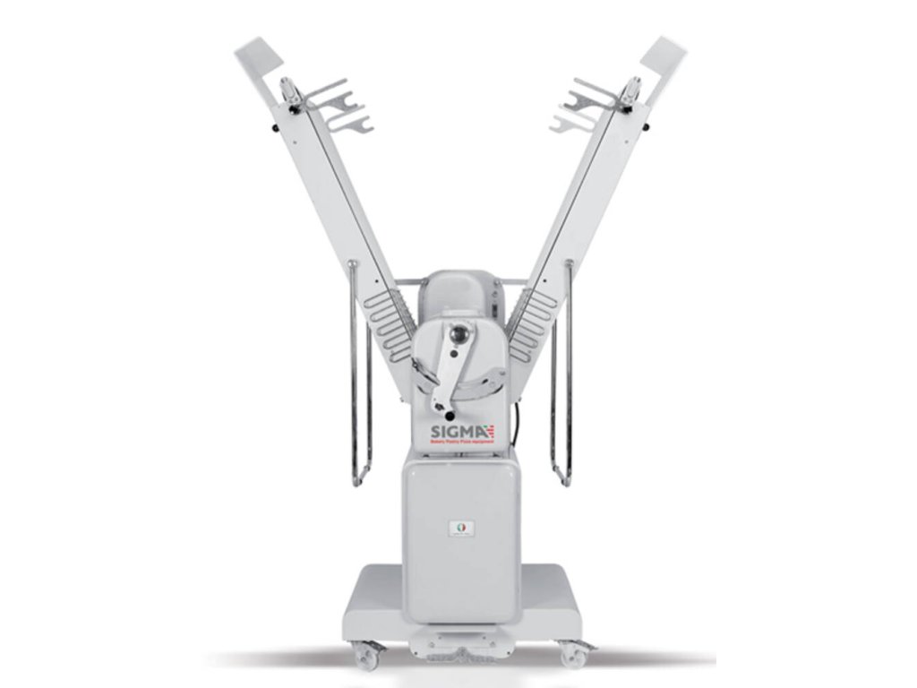 Stolní vyvalovačka na těsto SFG 500 B od italského výrobce SIGMA. profesionální vyvalovačka těsta vhodná pro cukrárny a výrobce těstovin vyvalovačkou lze zpracovat jakýkoliv druh těsta – listové těsto, křehké těsto, čerstvé těstoviny, fondán tenká a konstantní tloušťka zaručující jednotný vzhled produktů stolní provedení rozvalovací válce o průměru 73 mm z leštěného chromu maximální nastavitelné rozpětí válců 48 mm ramena z antikorozní oceli zdvihací a odnímatelná ramena pro zamezení přetížení stroje pásy s proměnnou rychlostí kuličková ložiska univerzální a sklopné škrabky elektrický ovládací panel s digitálním časovačem jednofázový měnič snadná údržbaDoplňkové parametry