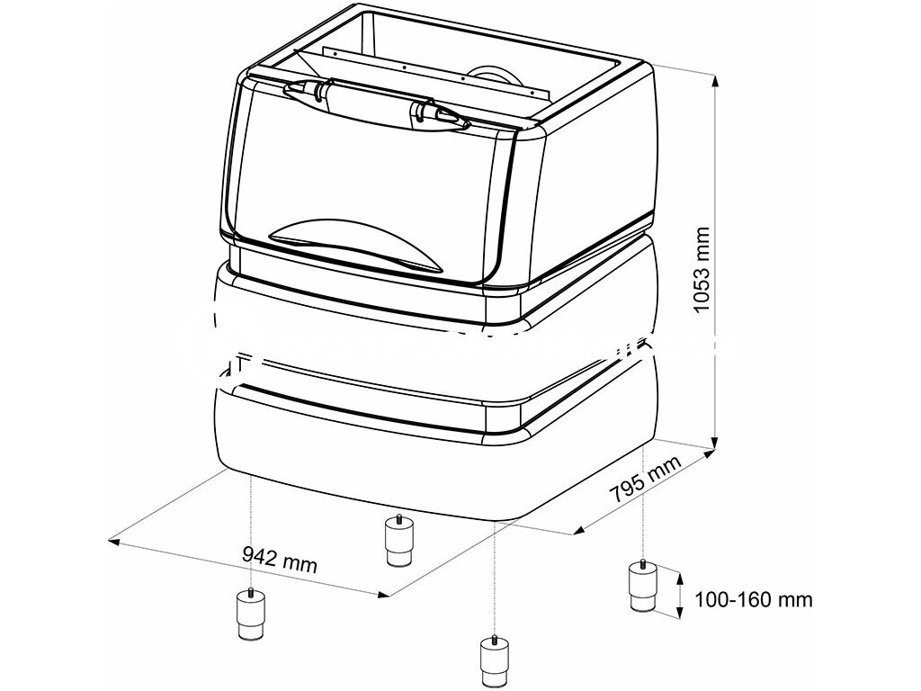 Při objednání je nutno upřesnit model výrobníku ledu. Použití u typů výrobníků :CM 150 - 350, CV 305 - 475 - 950, GM 550 - 1100 Materiál: plast Kapacita zásobníku: 240 kgDoplňkové parametry