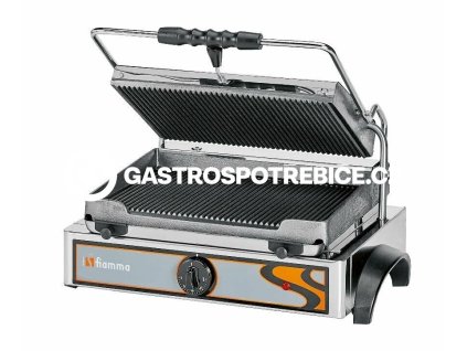Elektrický kontaktní gril 1/1 GR 8.2. Kontaktní plochy: Horní - 1. rýhovaná / 2. rýhovaná Spodní - rýhovaná robustní celonerezové provedení odkapová miska kontaktní plochy -...