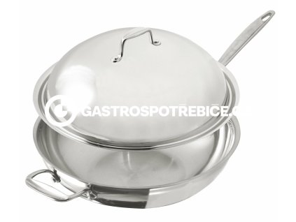 Profesionální pánev WOK s poklicí a pláštěm o tloušťce 2,5 mm s plochým dnem Ø160 mm je určená pro všechny druhy indukčních desek a WOKů.