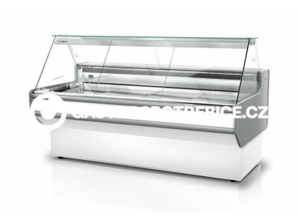 STANDARD: Rozměrný nerezový chladící úložný prostor, nerezová pracovní deska, osvětlený výstavní prostor, dno (leštěný nerez) snadno demontovatelný, tvrzené rovné čelní sklo...