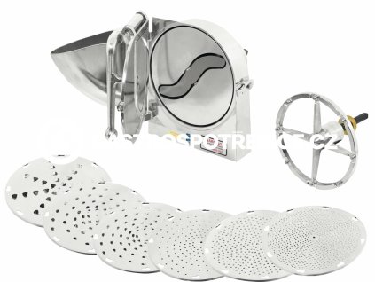 plátkovací nůž s plynulým nastavením tloušťky plátků bez nutnosti otevření víka úchytný kříž pro použití v základu dodávaných 6 ks nerezových struhadel (2 / 3 / 5 / 7 / 13 / W)...